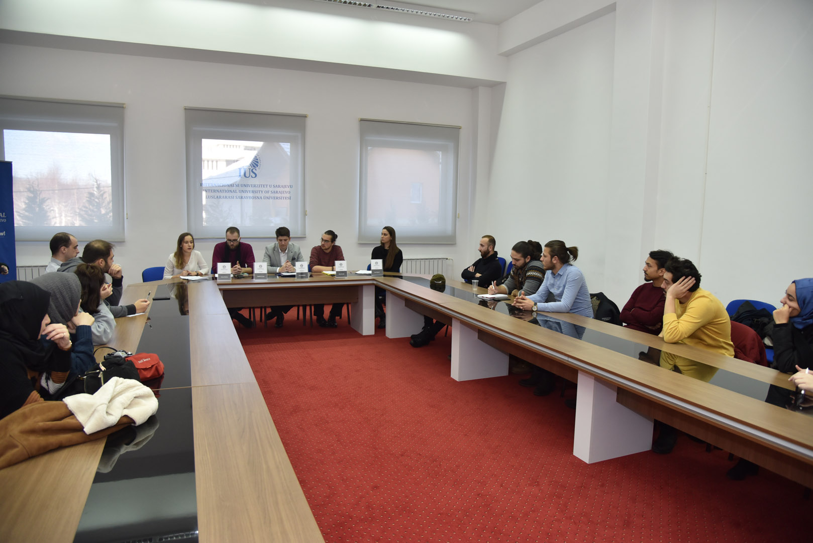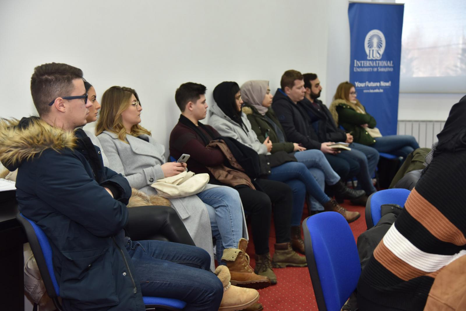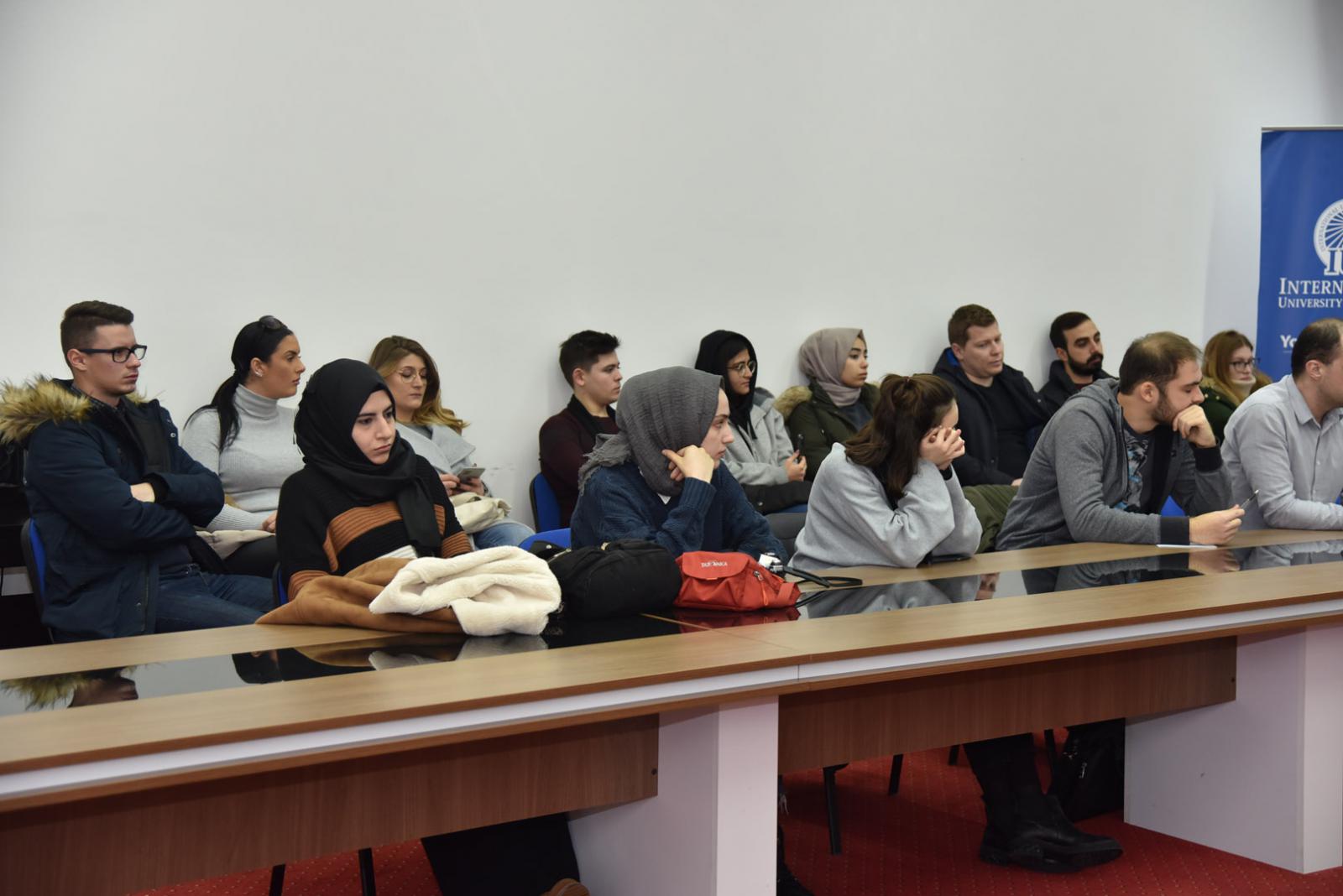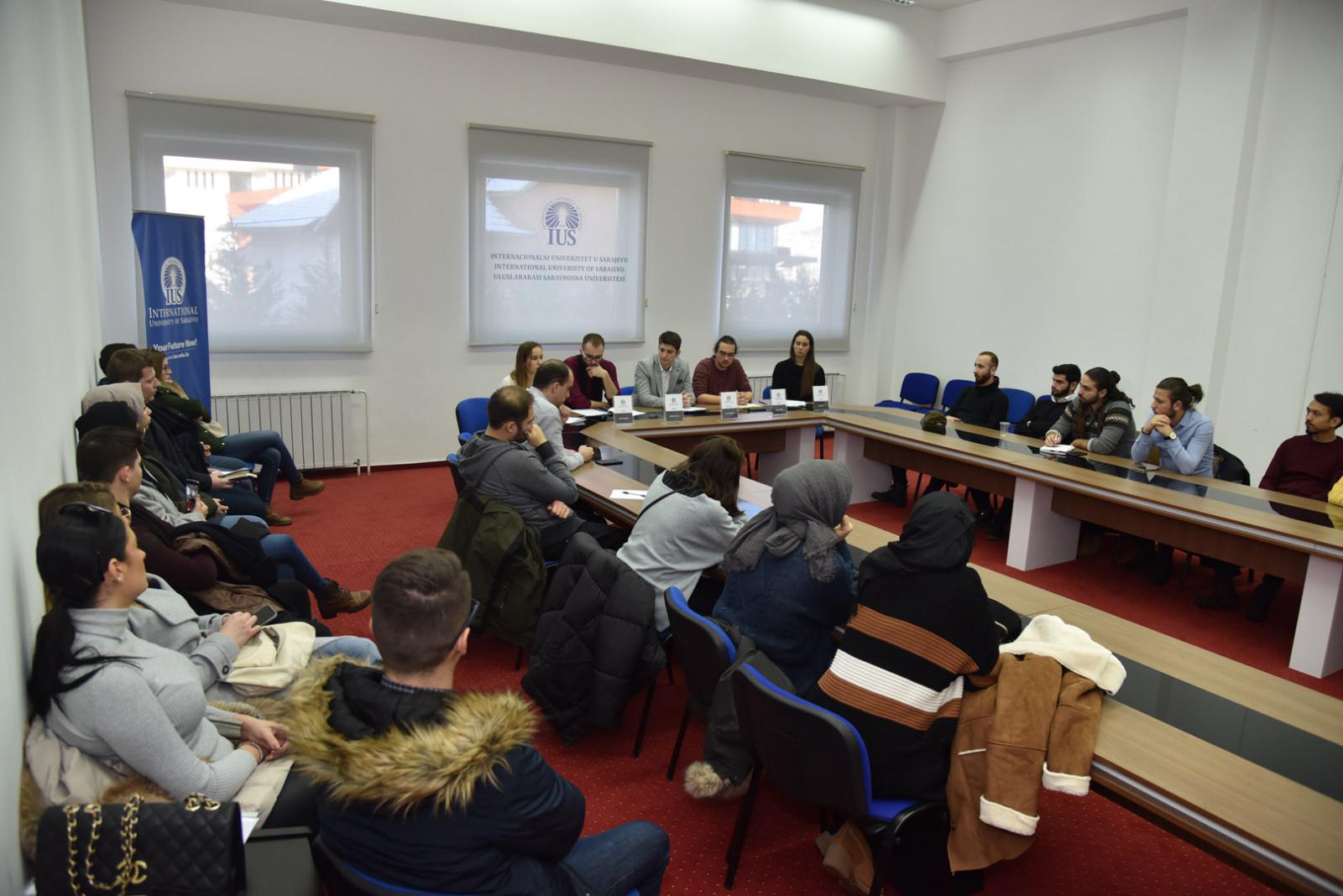Panelists were students from IUS: Tatiana Maslova (Russia), Amar Karađuz (BiH), Abdullah Dursun (Turkey), and Hena Begović (BiH). The moderator was Mr. Amar Buljubašić (BiH).