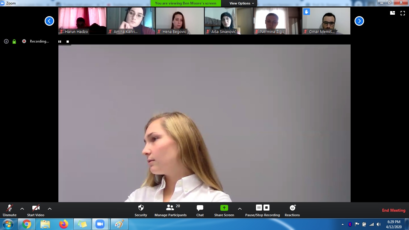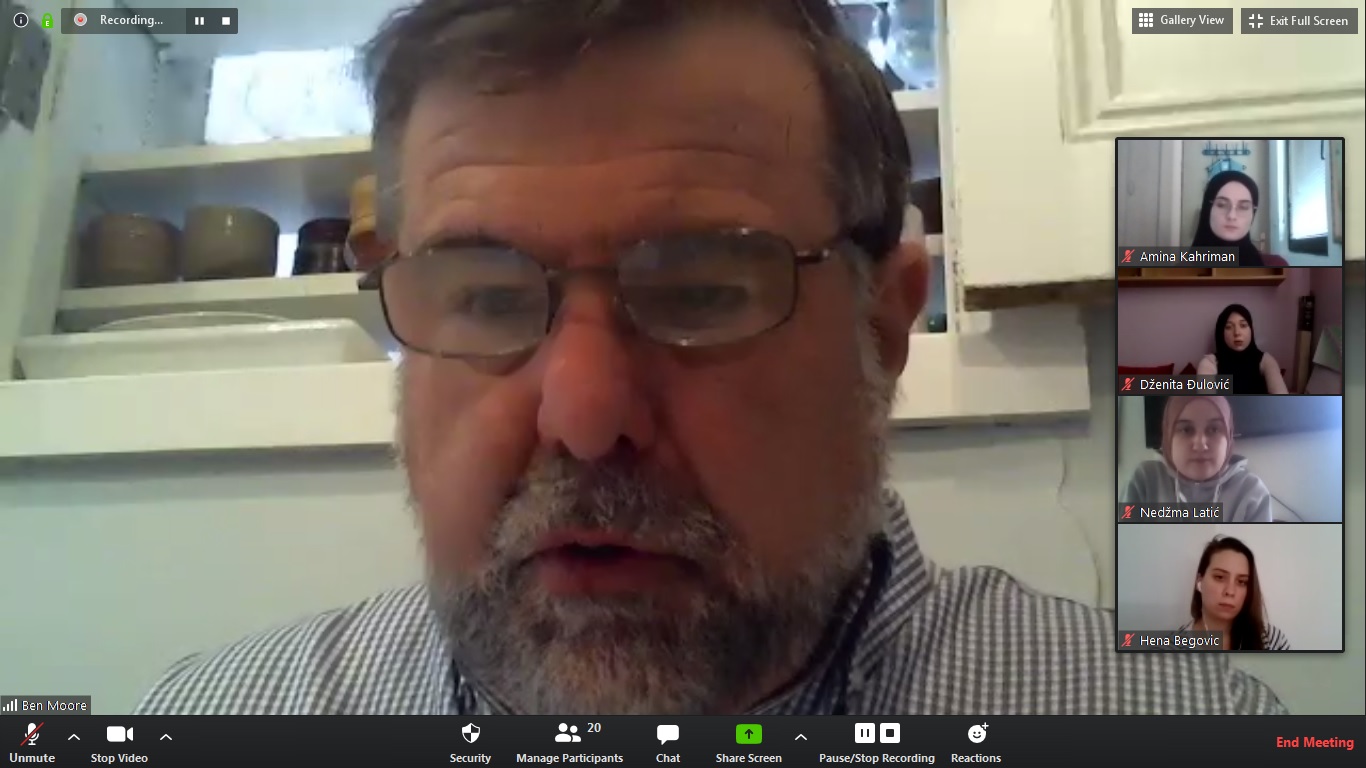 Respecting the decisions of state authorities regarding the implementation of measures to prevent the spread of corona virus (COVID-19), the Balkan Youth School (BSY) has successfully continued its activities online. On Sunday, 12 April 2020, the Balkan Youth School had a great privilege to host a distinguished Professor Benjamin Moore from Fontbonne University, USA.