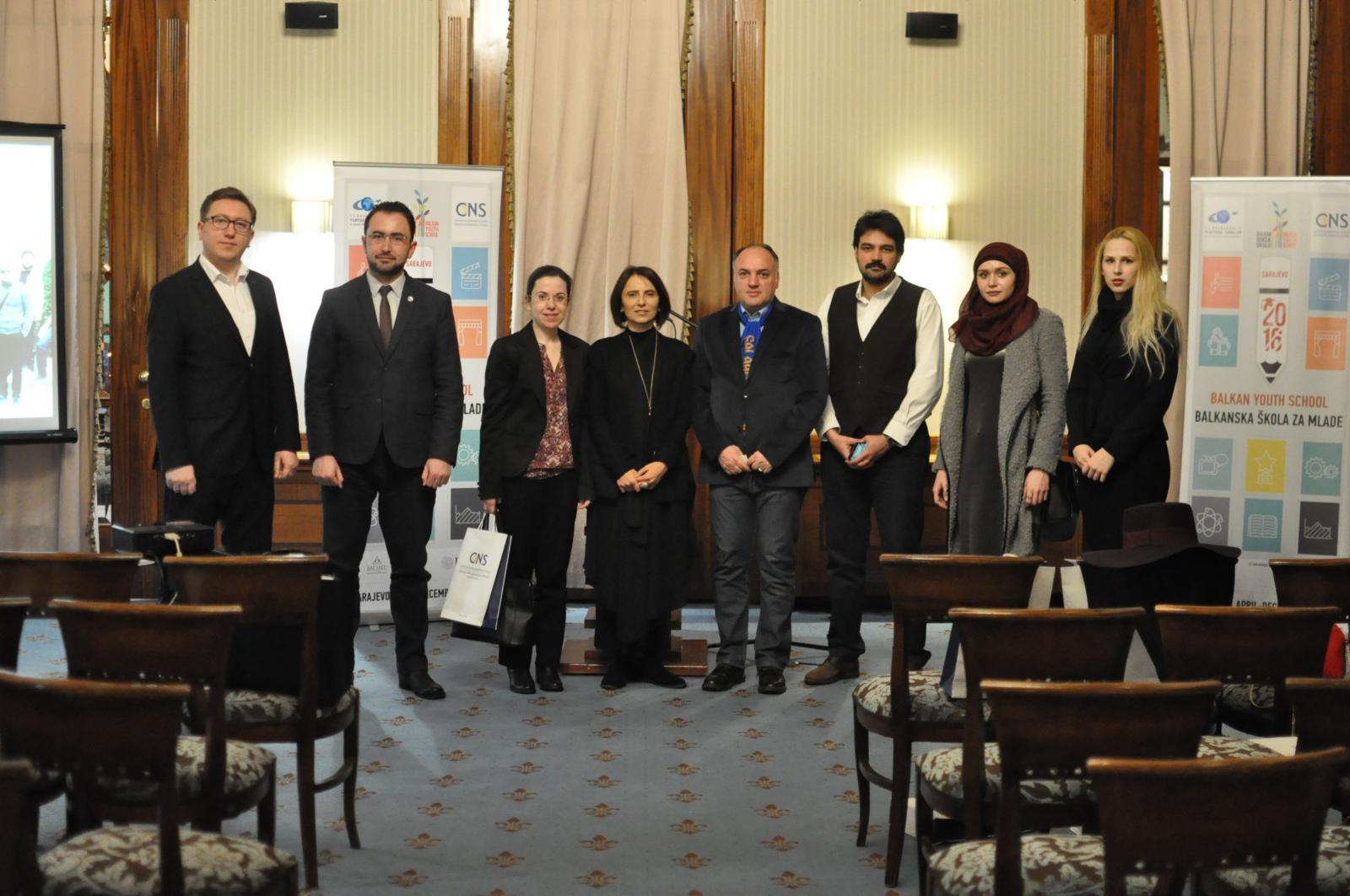 On December 28, 2016, Advisor to and Representative of Rector Assist. Prof. Dr. Muhamed Ali and Director of Balkan Studies Center (BSC) Prof. Dr. Mesut Idriz, attended the closing ceremony of the Balkan Youth School jointly organized by the Republic of Turkey Administration for Turks Living Abroad and Related Communities (YTB), Center for Advanced Studies (CNS) and other partners. Ms. Sevilay Unal from YTB stated that this school offered a social mobility, broad knowledge, and new perspectives; but most importantly school has awakened feeling of duty towards society, world, and mankind in the young people that attended it. Prof. Dr. Mesut Idriz and Assist. Prof. Dr. Muhamed Ali had a chance to talk with Ms. Sevilay and agreed in the meeting for the future cooperation between BSC and YTB on various projects. We would like to use this opportunity to congratulate to IUS students who successfully finished the Balkan Youth School with the best wishes for their future endeavors.