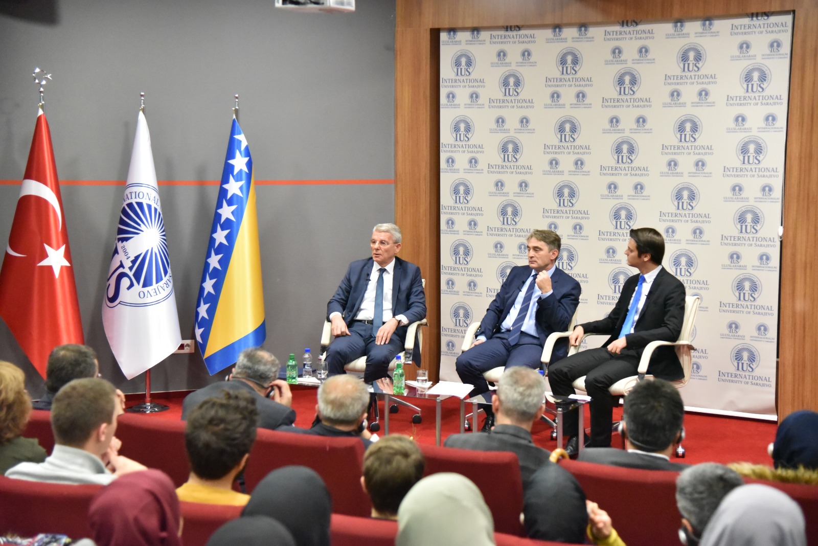 Members of the Presidency of Bosnia and Herzegovina, Željko Komšić and Šefik Džaferović, were guests at the International University of Sarajevo (IUS) on November 27, 2018, as part of the SPIUS Talks session dedicated to the Statehood Day of BiH