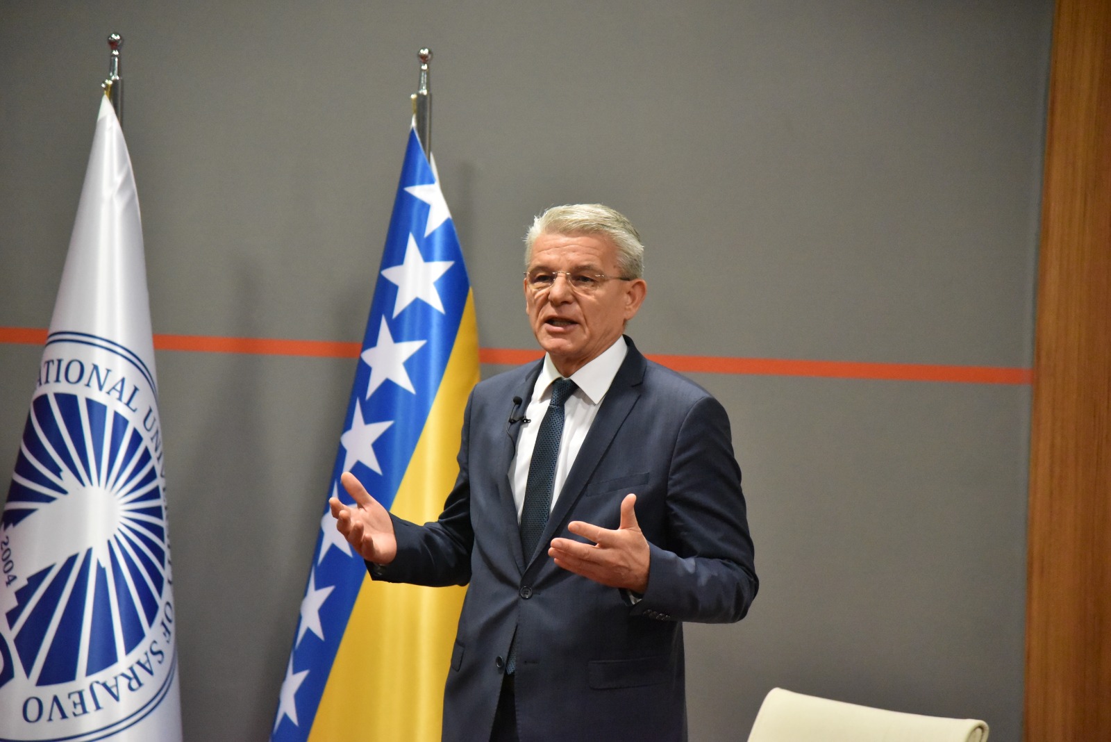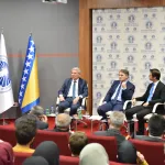 At the very beginning, Ismail Ćidić, president of the IUS Student Parliament and program moderator, thanked the distinguished Presidency members for visiting the International University in Sarajevo in the first seven days of their mandate. He also thanked them for deciding to send messages on the continuity of statehood and sovereignty of BiH from this institution on the occasion of the Statehood Day.