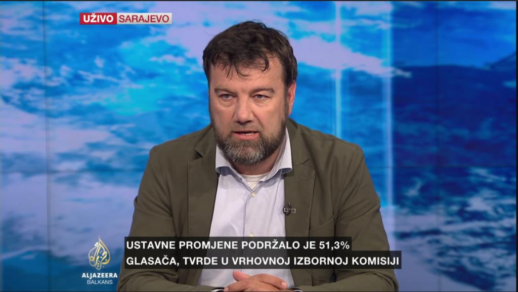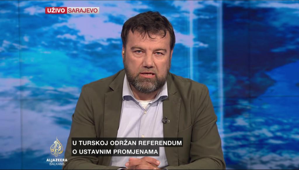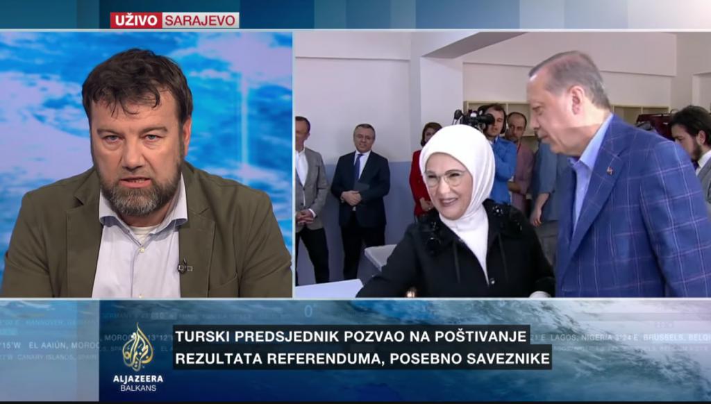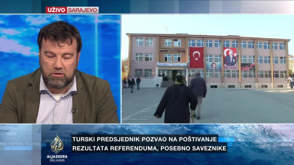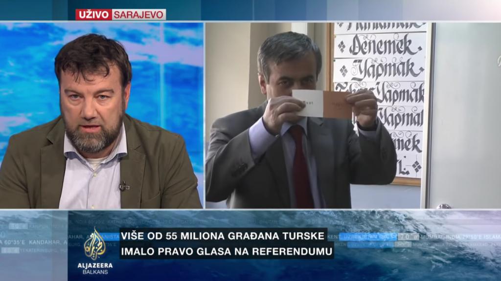 AL JAZEERA BALKANS: Glavna turska opoziciona Republikanska narodna partija pozvala je na poništenje referenduma. Njen potpredsjednik Bulent Tezcan izjavio je da je stranka primila mnogo pritužbi građana na proces glasanja te da je odluka izborne komisije, da prihvati listiće bez pečata, protivzakonita. Rekao je da će CHP ponijeti tužbu protiv opštinske izborne vlasti, te da su sa tužbama spremni ići ka Ustavnom sudu Turske i Evropskom sudu za ljudska prava. Predsjednik Visoke izborne komisije Sadi Güven rekao je da su svi glasački listići i koverte koji su dati glasačima u Turskoj važeći. Istakao je da je odluku da se listići bez pečata koriste donijela Komisija u posljednjem trenutku, kao i da je Vlada Turske prethodno dozvolila taj potez. Naš gost je Admir Mulaosmanović, profesor na sarajevskom Internacionalnom univerzitetu.