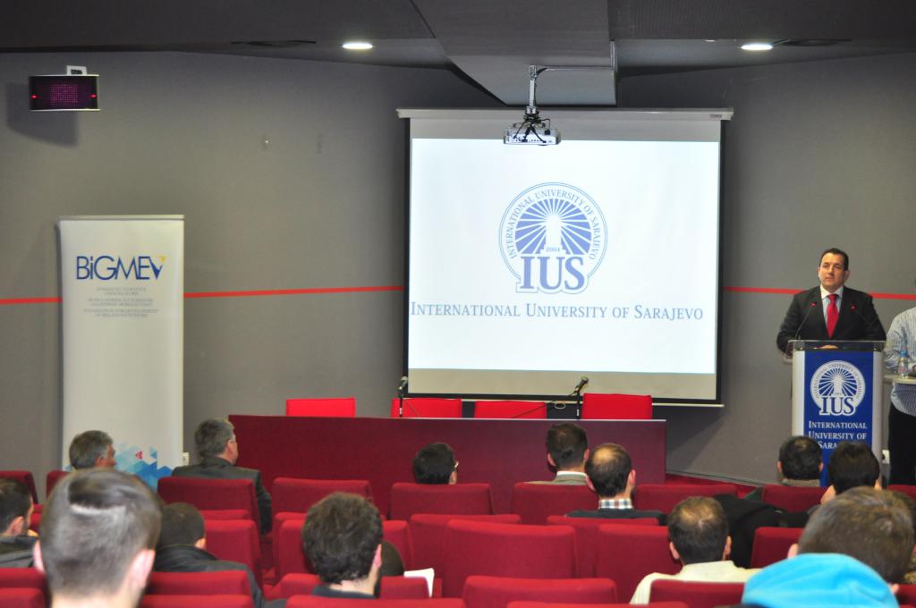 Balkan Studies Center organized a lecture titled “The Relations between Bosnia and Herzegovina and Turkey with an Emphasis on Economic Cooperation”, in the main amphitheater of the International University of Sarajevo, as part of its lecture series, on Wednesday, January 14, 2015. Dr. Selmo Cikotić, Director of the BIGMEV Foundation in Sarajevo was distinguished guest lecturer at this event. Coordinator of the Balkan Studies Center, Assoc. Prof. Dr. Ali Çaksu welcomed the distinguished guests in audience.