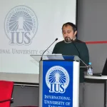IUS Rector, Prof. Dr. Yücel Oğurlu, Vice Rector for General Affairs, Assist. Prof. Dr. Muhamed Ali, Dean of the Faculty of Business and Administration (FBA), Assoc. Prof. Dr. Hasan Korkut, Dean of Faculty of Engineering and Natural Sciences(FENS), Prof. Dr. Fuat Gürcan, as well as other professors and students who attended the lecture.