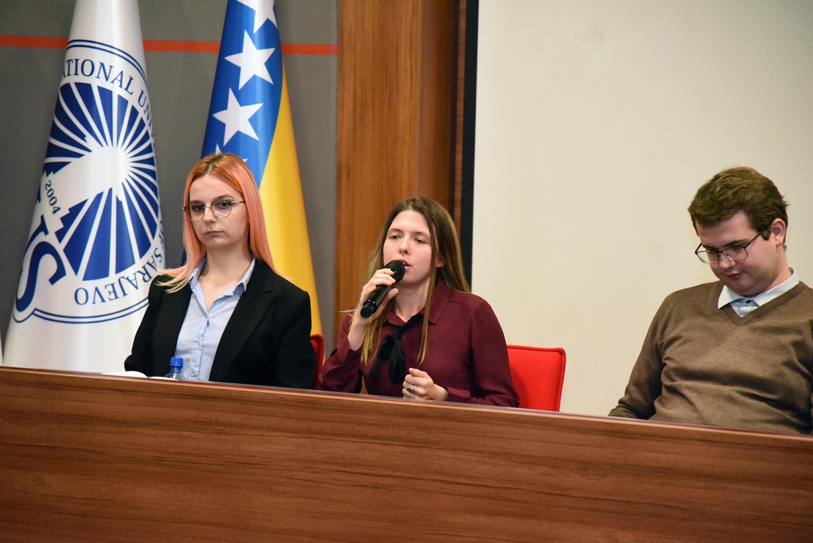 Balkan Study Center of the International University of Sarajevo organized a Youth Panel on Tuesday, November 23, entitled “The Western Balkans Demographic Crisis: The Youth Perception about the White Plague and the Mass Exodus.” In the eve of the National Statehood Day of Bosnia and Herzegovina, students of the International Relations, International Business and Finance, Political Science and English Language and Literature study programs took to the stage to discuss and present a very current issue in the country and the region – mass exodus of youth from BiH and its impacts on the country and its society.