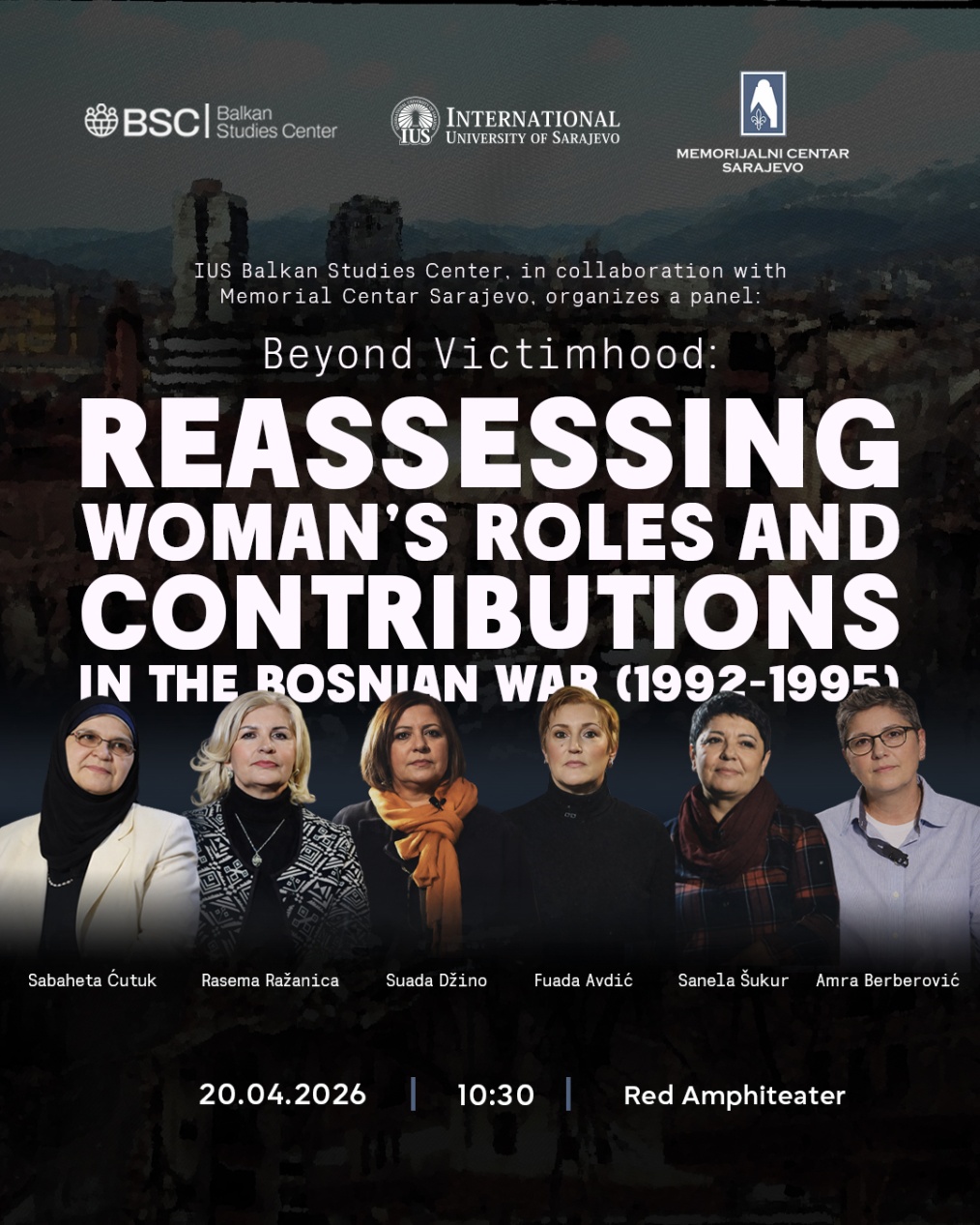 The IUS Balkan Studies Center, in collaboration with Memorial Center Sarajevo, invites you to a panel discussion: “Beyond Victimhood: Reassessing Woman’s Roles and Contributions in the Bosnian War (1992–1995)”